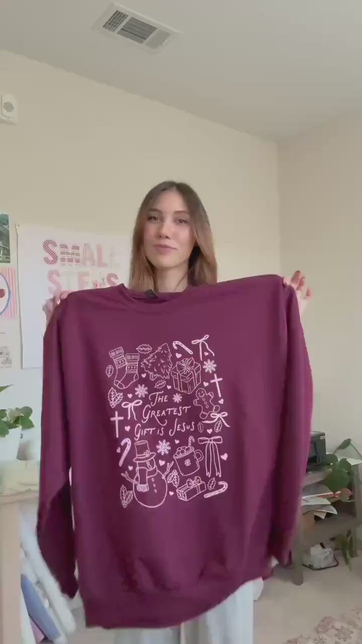 This cozy Christian crewneck is a sweet reminder that Jesus truly is the greatest gift of all. Perfect to wear all Christmas season long or to gift to someone who loves meaningful, faith-filled apparel. ♡
